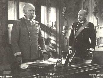 Bereits mit dem Titel seines Films setzt Oswald eine Markierung gegenüber anderen Weltkriegs-Filmen. Sein Akzent liegt auf der Zeit vor Ausbruch des Krieges; er betreibt Ursachenforschung, wo andere Regisseure mit ihren Filmen den Krieg heroisch verklären oder seine monströse Grausamkeit bloßstellen. »1914« ist ein Spielfilm, das historische Material ist Folie, obwohl die Drehbuchautoren Heinz Goldberg und Fritz Wendhausen eine möglichst geschichtsnahe Rekonstruktion der weltpolitischen Ereignisse anstrebten. Ihre Vorlage - und auch Oswalds Inszenierung - vermeidet Massenszenen, zeigt keine jubelnden Menschenmengen wie sie so typisch für die ersten Augusttage 1914 in ganz Europa waren. Oswald erliegt auch nicht der Versuchung, dokumentarische Aufnahmen in die Spielhandlung zu montieren. Er bemüht sich um eine möglichst sachliche, »originalgetreue« Darstellung der historischen Ereignisse. Fast unterkühlt könnte man diese Inszenierungsweise nennen, penibel in historischen Details, wenn sie auch nicht ganz fei von dramaturgischen Stereotypen ist und - da scheitert der Film - zu einer willkürlichen Episodik neigt. Dennoch ist »1914« eine Ausnahme in der Filmproduktion der Weimarer Republik, ein Film gegen die politische Vereinnahmung. Daß Oswalds Intention, wohl auch sein politisches Kalkül - eng verknüpft mit der ökonomischen Strategie des Produzenten und spekulationslustigen Regisseurs - auf Widerstände traf, ist ein Beleg mehr für das atypische Konzept dieses Films. Die Frage nach der Kriegsschuld konnte nicht ungestraft gestellt werden.