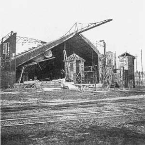 Staaken, geöffnete Atelierhalle. Dreharbeiten 3-GROSCHEN-OPER (1930)
