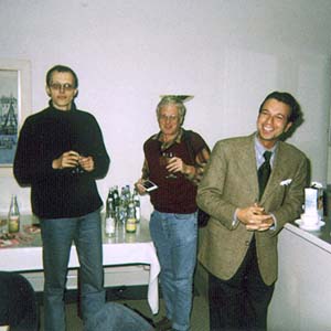 Eckhard Haschen, Horst Claus und Marko Paysan entdecken das Buffet im Gästehaus der Universität |