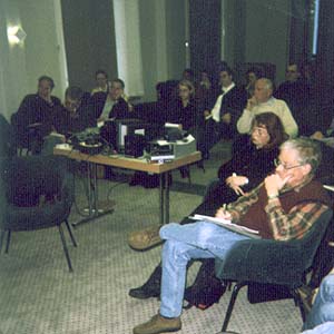 Die These steht im Raum. Vorn rechts, sitzend: Evelyn Hampicke, Horst Claus |