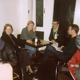 Beim warming-up in Rosies Café. Anke Kuhbier, Eva Sturm, Tim Gallwitz und Philipp Stiasny |