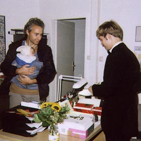 Hans-Michael Bock amüsiert sich mit Werner Grassmann und Anke Kuhbier |